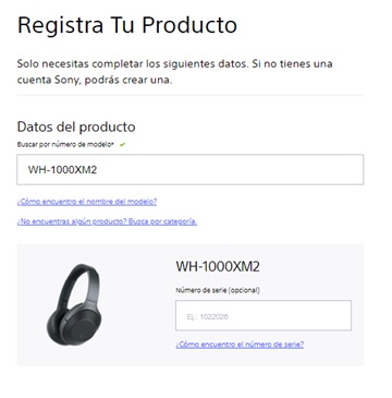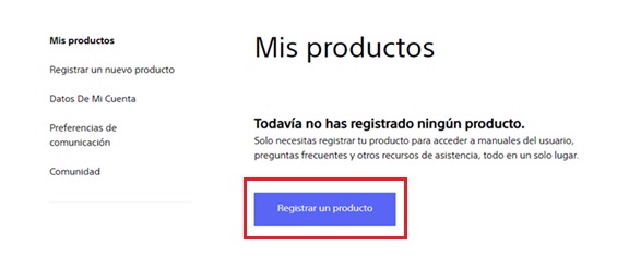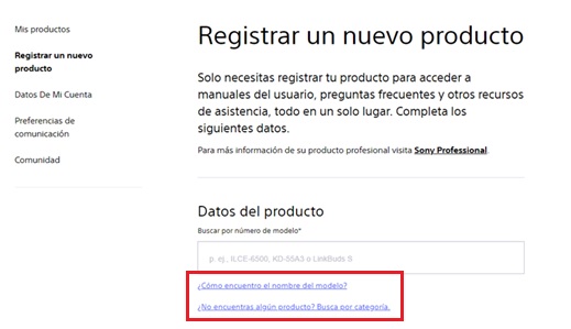 - Registrar un producto en My Sony