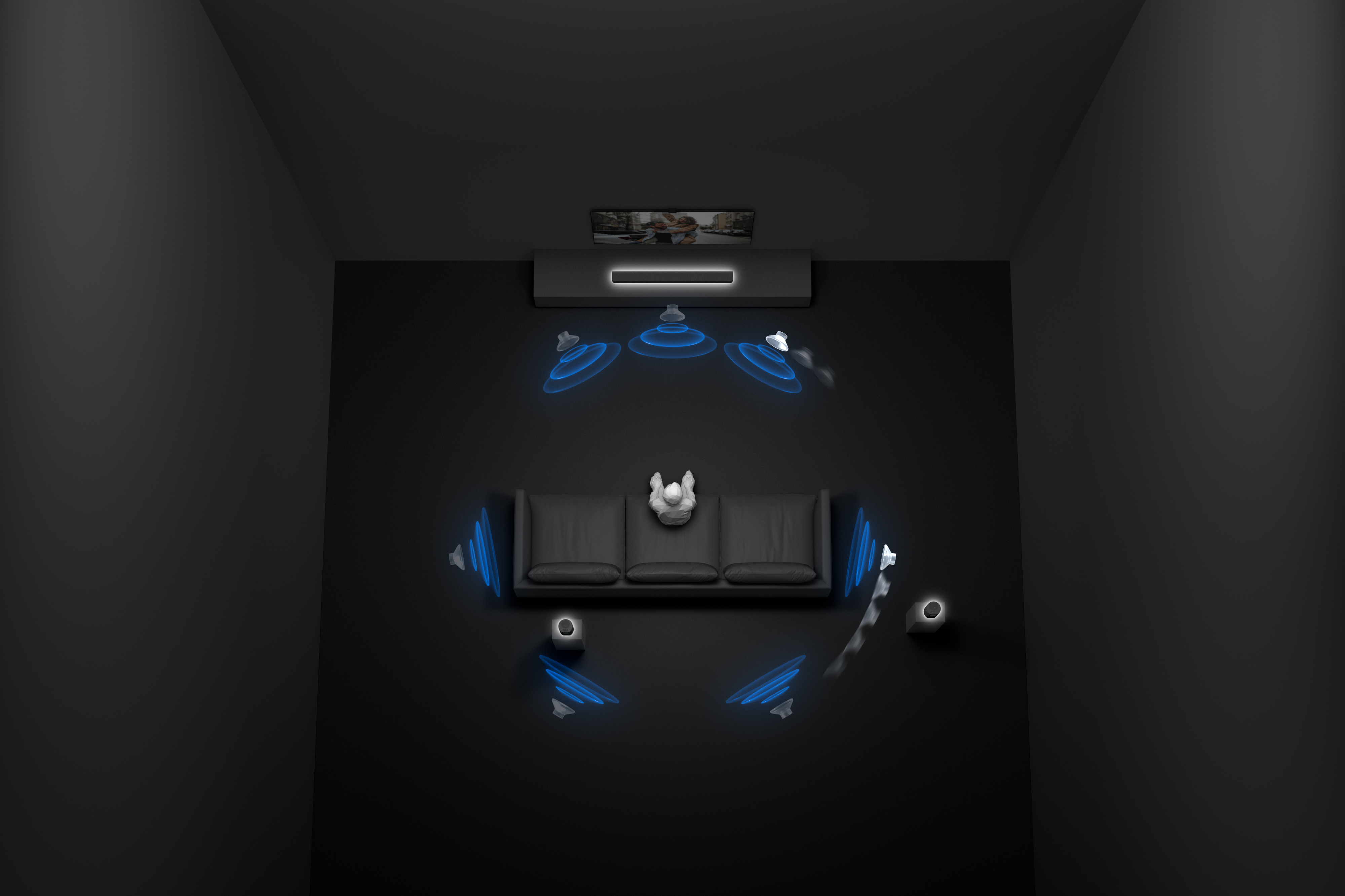Utilizando la tecnología propietaria de Sony 360 Spatial Sound Mapping1, se crean múltiples altavoces virtuales en zonas en las que no hay altavoces físicos, como en la parte superior y en los lados. Esto genera una experiencia de sonido espacial 360 que se optimiza para un entorno doméstico específico, con un amplio campo sonoro que te rodea de sonido desde todas direcciones, creando una experiencia de cine y sin tener que instalar altavoces físicos en el techo o en las paredes. Anteriormente, eran necesarios tanto una barra de sonido como altavoces traseros para generar los altavoces virtuales – con los nuevos lanzamientos BRAVIA Theatre Bar 9 y BRAVIA Theatre Bar 8 puedes disfrutar de 360 Spatial Sound Mapping utilizando una única barra de sonido. Además, BRAVIA Theatre Quad puede crear un sonido surround con 4 estilizados altavoces.
