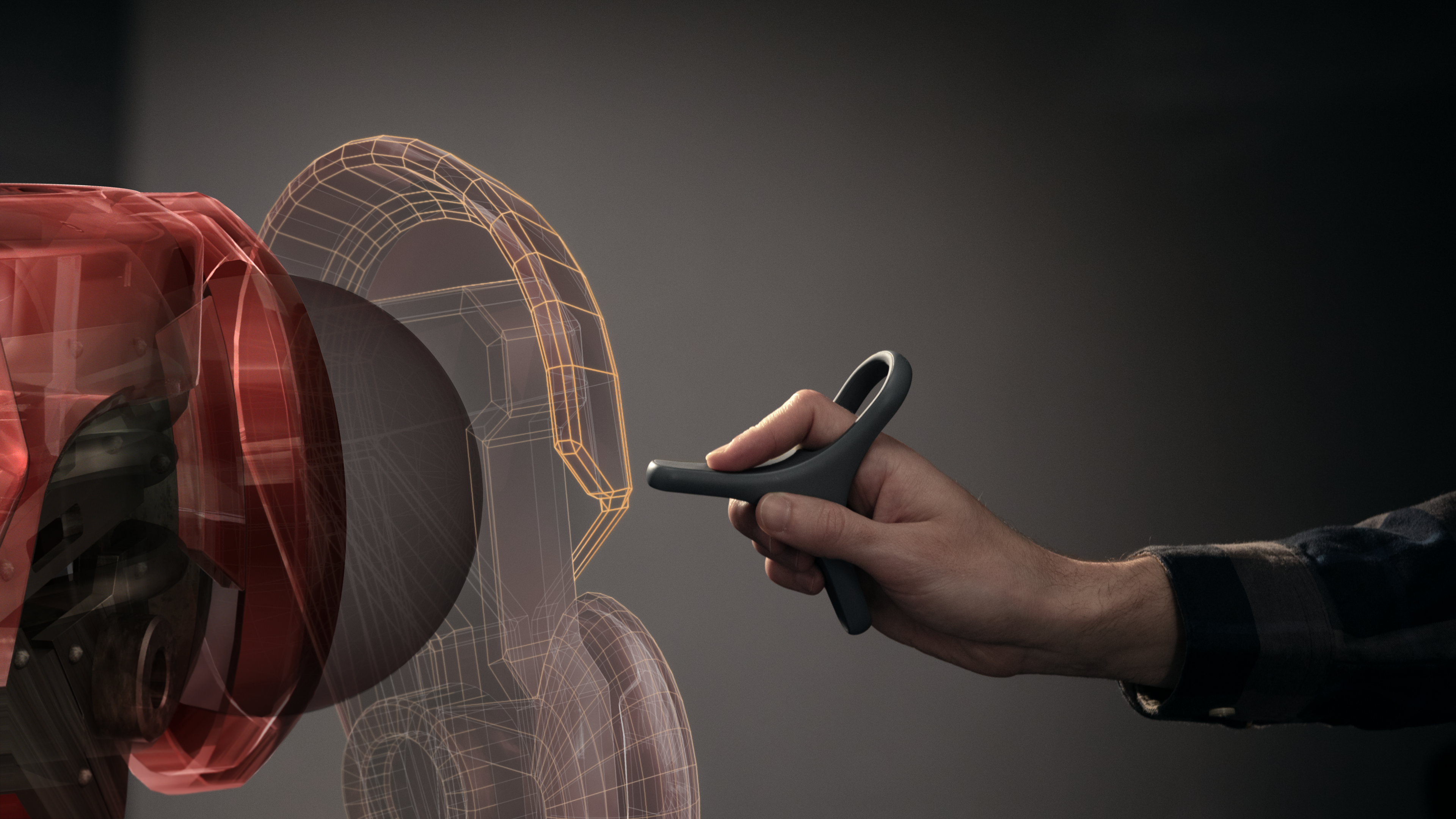 El sistema incluye un mando de anillo que permite a los usuarios manipular objetos de forma intuitiva en el espacio virtual. Este también viene con un mando de señalización que permite apuntar de forma estable y precisa en los espacios virtuales, con un diseño optimizado y disposición de los botones para un control eficiente y preciso. Manteniendo el mando de señalización con la mano dominante y agarrando el mando de anillo con los dedos de la otra mano, los creadores pueden modelar objetos 3D utilizando ambos mandos y un teclado, todo ello mientras están usando el head mounted display.