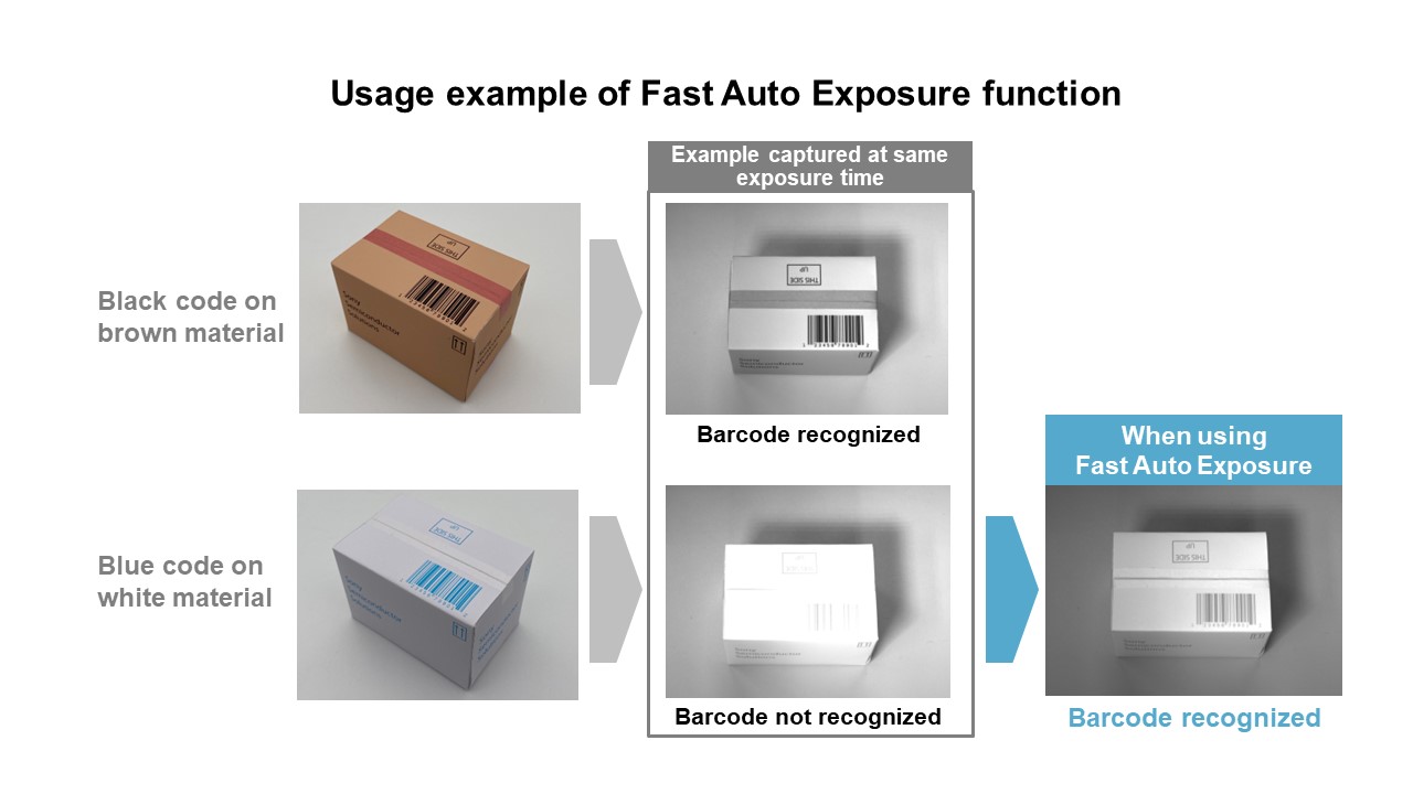 Diversas características están incluidas en este producto para aligerar la carga de procesamiento de imagen en postproducción y mejorar la precisión del reconocimiento, como por ejemplo Fast Auto Exposure (Exposición automática rápida), que permite realizar cálculos a alta velocidad y la configuración de los tiempos de exposición óptimos, y Quad HDR, que amplía el rango dinámico al establecer múltiples tiempos de exposición en unidades de cuatro píxeles cada una. Estas características ayudan a racionalizar el diseño de las cámaras, reducir costes y mejorar la precisión del reconocimiento.